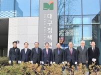 대구시가 대구미래 50년 핵심과제의 계획과 실행을 뒷받침할 싱크탱크를 출범한다.대구시는 1 일 대구경북디자인센터에서 대구정책연구원 설립 이사회 개최 및 현판 제막식을 가지고, 대구미래 50년 핵심과제의 계획과 실행을 뒷받침할 ‘대구정책연구원’ 출범식을 개최했다고 밝혔다.  이날 출범행사는 홍준표 대구시장, 이만규 대구시의회 의장을 비롯해 박양호 초대 원장, 홍원화 경북대 총장, 신일희 계명대 총장, 국양 디지스트 총장, 대구정책연구원 직원 등 50여 명이 참석해 출범을 축하했다.  시는 지난해 대…