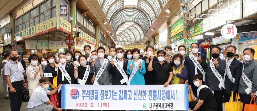 한편 교육청은 강은희 교육감을 비롯해 교육장, 직속기관장 및 교육청 직원 등 160여명이 참여해 추석맞이 제수용품과 식재료 및 생필품 등을 구매했다.