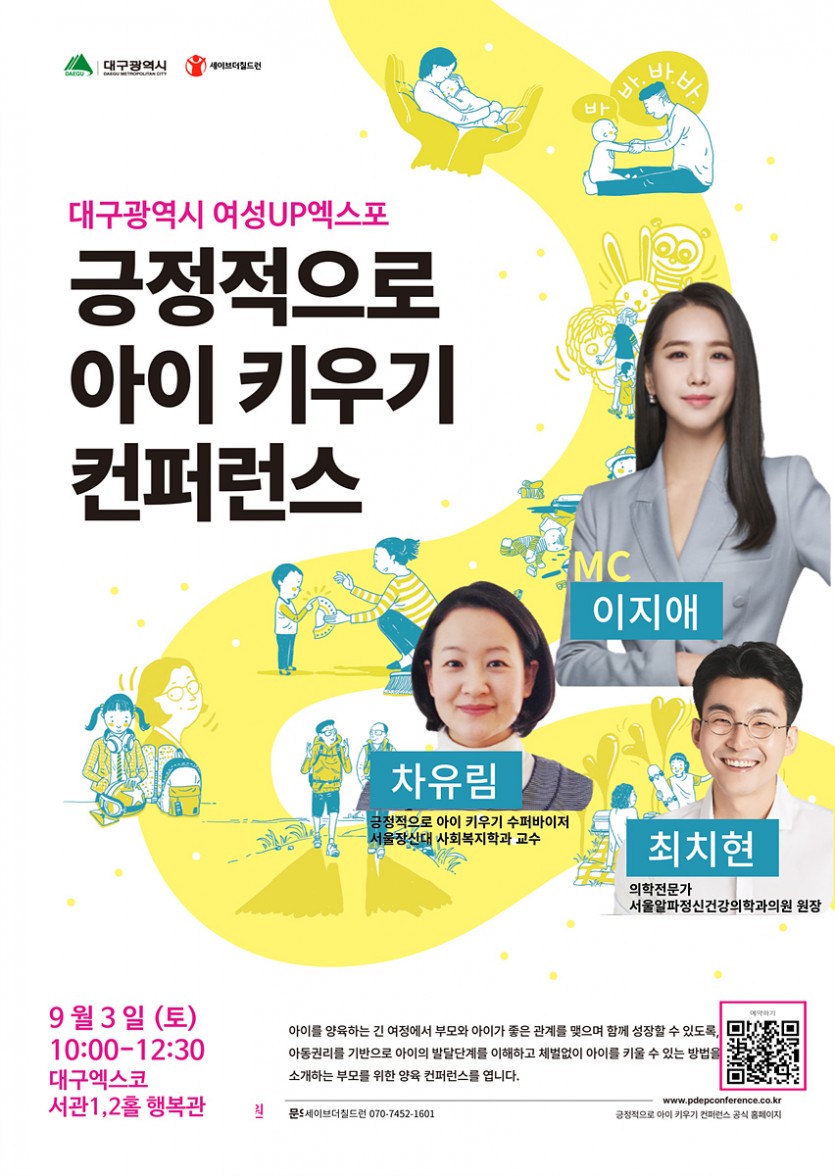 대구시는 아동친화도시 조성사업의 일환으로 세이브더칠드런 동부지역본부와 함께 ‘아동이 행복한 도시 만들기’ 행사를 오는 9. 2일~3일 까지 엑스코 서관 1, 2홀에서 개최한다고 29일 벍혔다.