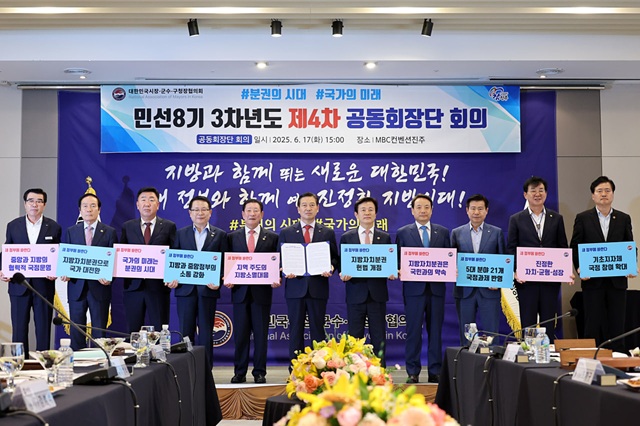 대한민국시장·군수·구청장협의회(대표회장 조재구)는 17일 경남 진주 MBC컨벤션에서 열린 ‘민선8기 제4차 공동회장단 회의’에서 ‘새 정부에 바란다’는 공동건의문을 채택했다.