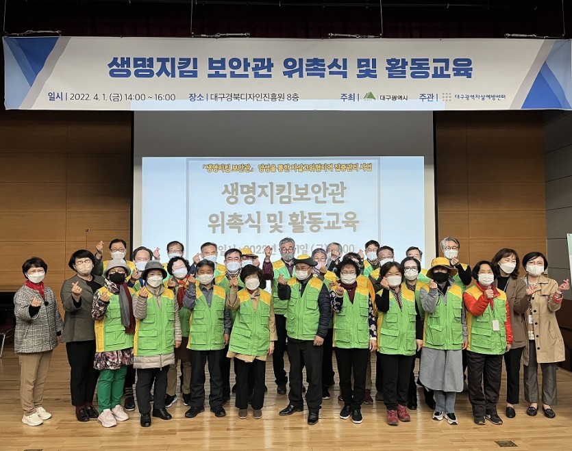 대구시는 자살빈발지역 등에 대한 관리를 강화하고 자살예방 인프라 구축을 위해 4월부터 퇴직공무원 34명이 ‘생명지킴 보안관’으로 활동한다고 1일 밝혔다.