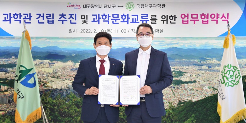 국립대구과학관은 10일 달서구청과 업무협약을 체결하고 달서구청에서 추진 중인 신규과학관 건립과 과학문화교류를 위해 적극 협력하기로 했다.