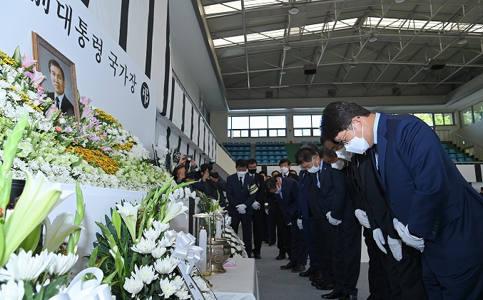 권영진 대구시장은 27일 오후 2시 두류공원 안병근올림픽기념유도관에 설치된 故노태우 前대통령 분향소를 찾아 깊은 애도를 표했다.