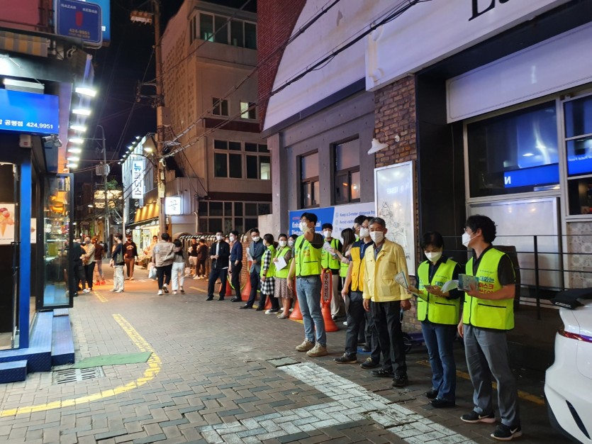 이날 캠페인에는 중부경찰서 생활질서계, 동덕지구대, 대구시청 사회재난과, 중구청 안전총괄과, 중구보건소 위생과가 참여했고, 민원다발구역 일대에서 거리두기 홍보용 영문 현수막을 게첩하고 영문 방역수칙 안내문을 나눠주며 외국인들에게 경각심을 고취하고 거리두기 참여를 유도했다.