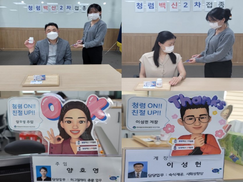 한국법무보호복지공단 대구지부(지부장 김주병)는 지난 29일 부정청탁, 금품 수수 등이 없는 건전한 사무실 분위기 조성과 청렴 백신 접종을 통해 직원들의 부정부패에 대응할 수 있는 청렴 면역력을 향상시키고자 2회차에 거쳐 "청렴백신접종 청렴캠페인"을 실시했다.