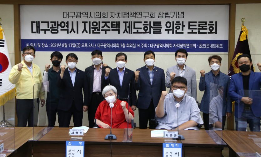 한편, 대구시의회 자치정책연구회는 시정혁신을 위한 새로운 정책대안을 발굴하기 위해 올해 3월 새롭게 구성된 의원연구단체로, 이번 토론회에서 논의된 지원주택 관련 사항을 지속적으로 점검하고 필요한 사항을 지원하겠다고 밝혔다.