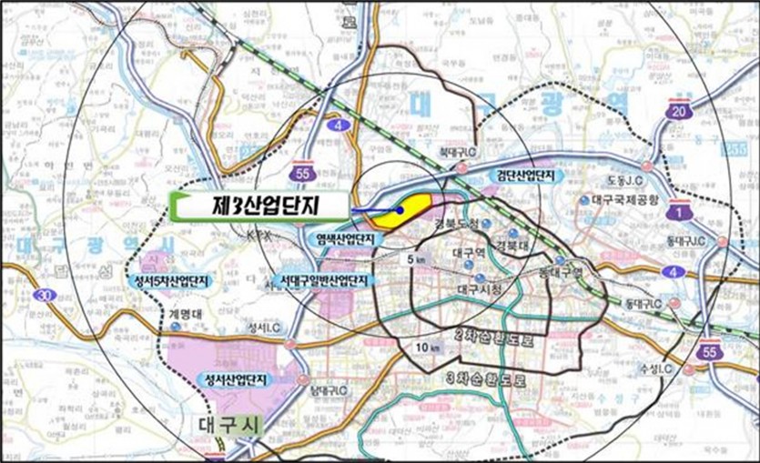 현재 신천대로에서 제3산업단지로 진입은 1곳 밖에 없으며, 1단계로 신설되는 신천대로 진․출입로는 팔달교에서 침산교 방향으로 진입로의 추가 개설과 산단 내에서 신천대로로 진출하는 도로 신설이 그 핵심이며 오는 2022년 상반기 개통을 목표로 하고 있으며 입주기업들의 원활한 물류소통과 교통편의에 큰 도움이 될 것으로 기대된다.