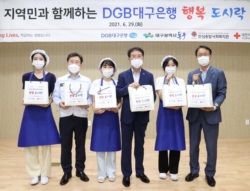 DGB대구은행은 29일 대한적십자사 대구지사와 함께 안심종합사회복지관에서 행복 도시락 전달 봉사활동을 진행했다.