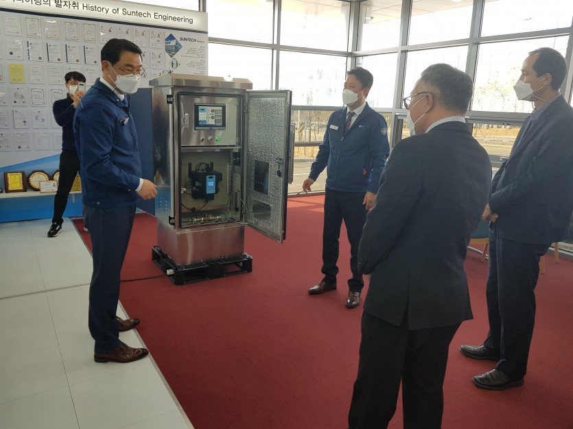 신봉재 대구지방조달청장은 23일 혁신시제품인 ‘수질조정 자동드레인 장치’ 테스트사업을 수행 중인 대구시 상수도사업본부와 제품 생산업체인 ㈜썬텍엔지니어링(대표 손창식)을 방문했다고 밝혔다.