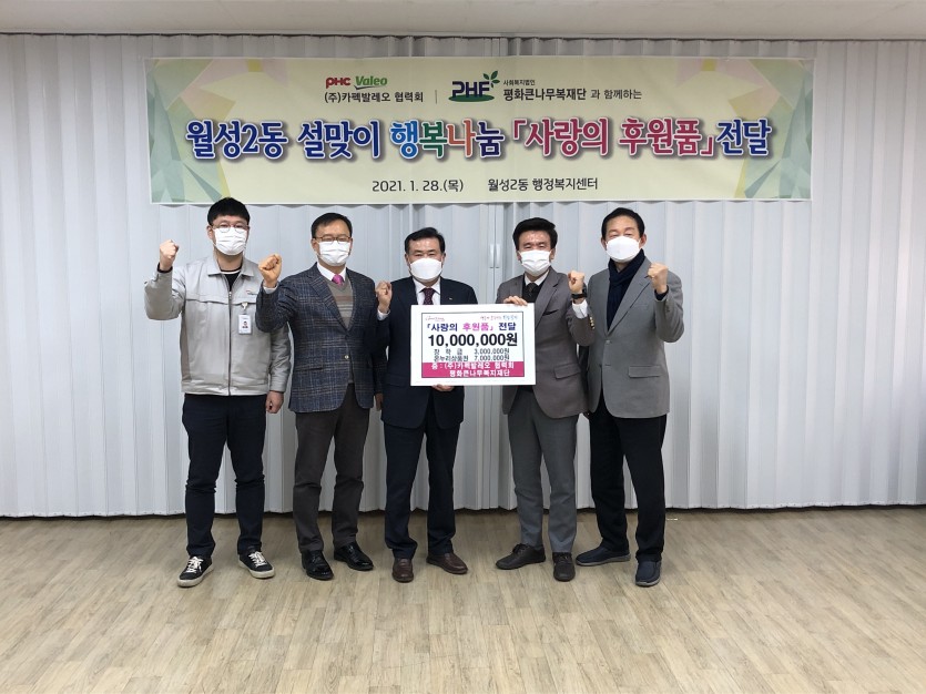 대구 달서구는 지난 28일 월성2동 행정복지센터에서 ㈜카펙발레오 산하 10개 협력기업체 모임인 ㈜카펙발레오 협력회(회장 김영현)와‘사랑의 후원품’전달식을 가졌다고 밝혔다.