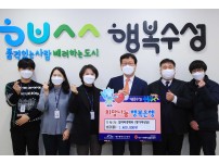 대구 수성구는 지난 18일 어려운 이웃을 위해 써달라며 ‘2020년 공공분야 일자리사업평가’ 포상금 140만원을 대구사회복지공동모금회에 전달했다.수성구는 지난해 일자리사업에 140억여 원을 투입해 183개 사업을 추진했으며, 코로나19로 인해 생계에 어려움을 겪고 있는 문화·예술인들을 위해 대구에서 유일하게 공연예술분야 지역특성화사업을 실시한 것이 높은 평가를 받았다. 김대권 수성구청장은 “공공분야 일자리사업 평가로 받은 포상금을 직원들이 자발적으로 기부해 더욱 의미가 있다”며, “올해도 지역주민들과 힘을 합쳐 코로나19를…