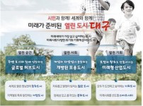 대구시가 시민중심의 소통을 위해 열린시정을 구현한다.대구시는 민선 7기 시민과 소통하고 공감하는‘시민 중심의 열린 시정’을 구현키 위해 민선 7기 시정철학과 운영방향을 담은 시정슬로건(안)에 대해 시민들의 선호도를 조사할 계획이다고 17일 밝혔다. 이번 민선 7기 시정슬로건 후보로는 민선 6기 시정과의 연속성을 도모하면서도 민선 7기 대구혁신에 대한 의지를 담은‘오로지 시민행복, 반드시 대구혁신’시민행복을 최우선으로 해 대구를 대한민국 최고의 ‘스마트시티’로 조성해 나가고자 하는‘시민을 행복하게, 대구를 스마트하게’시민행복을 최우선…
