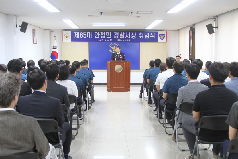 대구남부경찰서에서 6일 제65대 안정민 경찰서장 취임식을 개최했다.