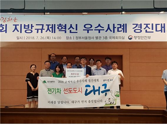 대구시는 행정안전부에서 실시하는 ‘지방규제혁신 우수사례 경진대회’에서 ‘친환경 전기화물차 에너지 소비효율기준 완화’로 대통령상을 수상하고 특별교부세 2억 원을 받았다고 27일 밝혔다.