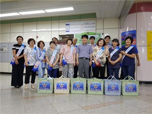 특히, 온열질환에 취약한 노인들과 장애인들이 많이 이용하는 시간대인 15시~16시 사이에 진행됐으며, 더불어 도시철도 이용고객들에게 부채 2000여개도 배부했다.