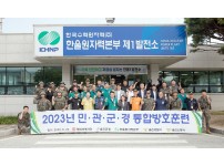 한국수력원자력(주) 한울원자력본부(이하 한울본부)는 22일 한울1발전소 일대에서 민ㆍ관ㆍ군ㆍ경ㆍ소방 합동으로 통합방위 대테러 종합훈련을 실시했다고 밝혔다.이번 훈련은 육군 50사단 주관하에 국가중요시설 방호능력 향상 및 유관기관과 협조체계 구축을 목적으로 실시돼 한울본부 청원경찰과 특수경비대 및 자체 소방대를 포함해 50사단 예하 부대, 울진군 경찰 및 소방, 울진군청 방사능측정팀 등 100여 명이 참가했다.훈련은 미승인 드론이 발전소로 접근하는 것이 확인돼 청ㆍ특경근무자가 초기 대응했으나, 폭발물을 탑재한 체 한울1발전소 연료건물…
