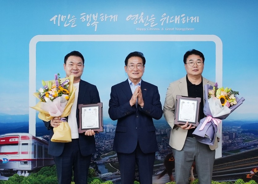 영천시는 26일 "2023 전국생활체육대축전"의 성공적인 개최에 기여한 민간인 유공자 2명에 대한 도지사 표창 수여식을 가졌다고 밝혔다.