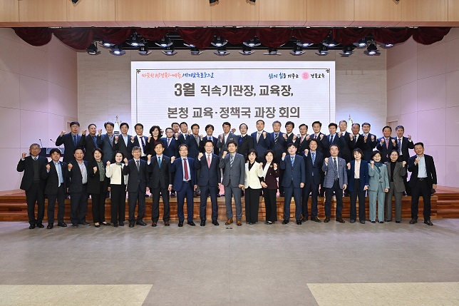 김태형 부교육감의 늘봄학교 운영 당부사항, 3. 1. 자로 임용된 기관장 소개, 교육국장·정책국장의 부서별 핵심 추진 사업 안내 및 교육감과의 소통의 시간 등으로 진행했다.