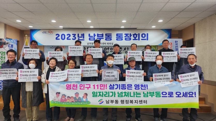 영천시는 10일 남부동 행정복지센터에서 정책기획실장 주재로 남부동 이·통장 등 20여 명이 참석한 가운데 영천시 민·군 상생복합타운 관련 설명회를 가졌다고 밝혔다.
