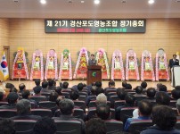 경산포도영농조합법인(조합장 백용대)은 24일 경산시농업기술센터 농업인교육관에서 조합원과 내빈 등 300여 명이 참석한 가운데 제21기 정기총회를 했다고 밝혔다.이번 총회는 우수 조합원 시상식 및 감사패 전달, 감사보고, 예‧결산 승인, 주요 사항 토의 순서로 진행됐다.백용대 조합장은“한동안 선풍적 인기를 누렸던 샤인머스켓의 재배면적 증가에 따른 공급 과잉으로 가격이 하락하는 등 어려운 상황에서도 경산 포도 생산을 위해 애쓴 조합원들에게 감사의 말씀을 드리며 앞으로도 고품질 생산을 위해 힘써주시길 바란다”고 했다.조현일 경산시장은 “…