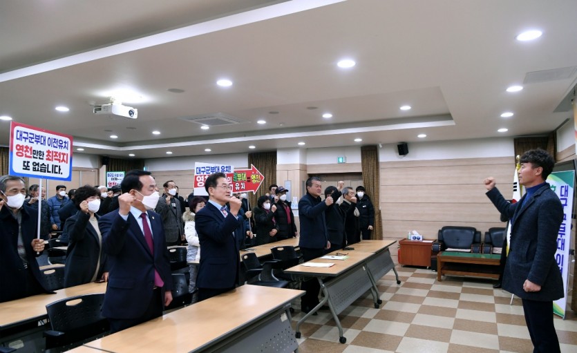 힌편 참석자들은 올해 영천시의 숙원이자 최대 현안인 대구 군부대 영천 유치를 기원하는 퍼포먼스를 가지며 “모두의 하나된 염원으로 군부대 영천 유치의 열망이 확실히 전달되었으면 좋겠다.”라며 결의를 다졌다.
