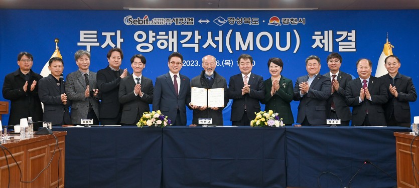 경북도와 김천시는 26일 ㈜새빗켐과 경북도청에서 이철우 도지사, 김충섭 김천시장, ㈜새빗켐 박민규 대표이사 등이 참석한 가운데 이차전지용 전구체 복합액을 포함한 이차전지 리싸이클링 공장 건립을 내용으로 하는 투자양해각서(MOU)를 체결했다고 밝혔다.