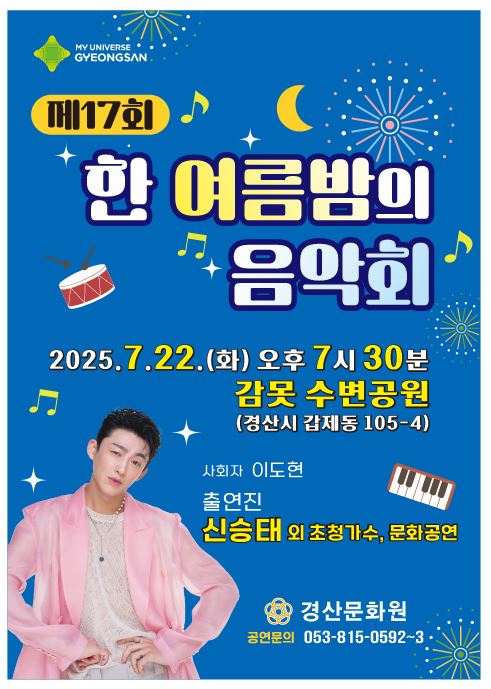 경산시는 시민들에게 다양한 문화 향유의 기회를 제공하고, 무더운 여름밤의 피로를 달래기 위해 22일 감못 수변공원에서 '제17회 한여름밤의 음악회'를 개최한다.