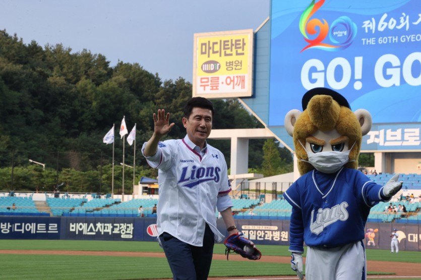 이강덕 포항시장은 ‘제60회 경북도민체육대회’의 성공적 개최를 기원하기 위해 5일 대구 삼성라이온즈파크에서 열린 프로야구 삼성과 LG의 경기에 앞서 시구행사에 참여했다.