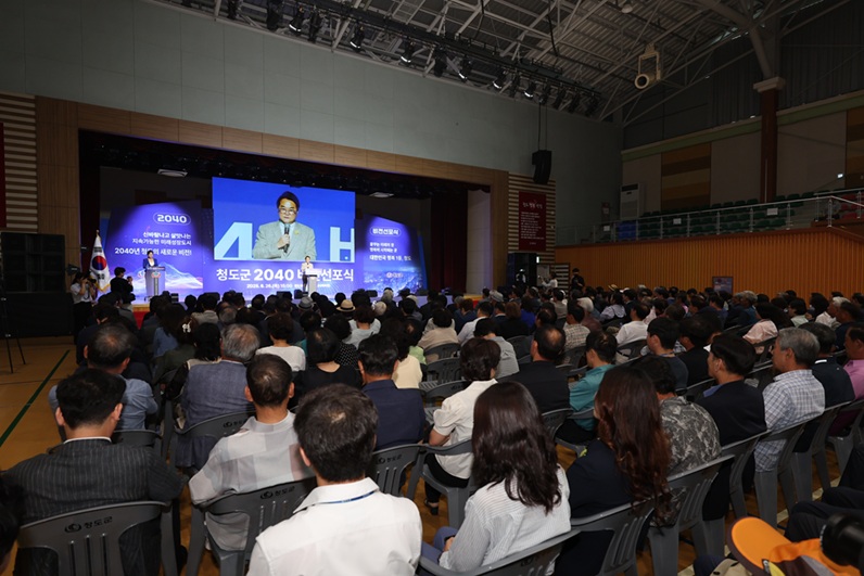 군은 지난 26일 청도국민체육센터 실내체육관에서 '청도군 2040 비전선포식'을 열고, 미래형 도시로의 전환을 위한 전략을 대대적으로 발표했다.