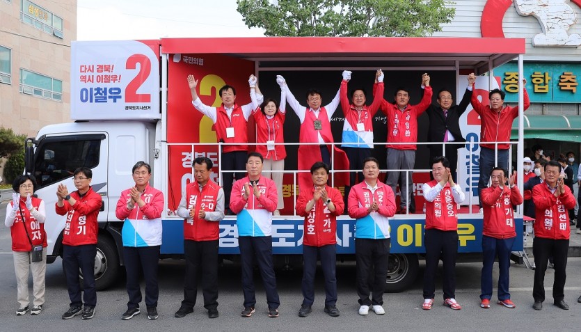 이철우 도지사 후보는 “국민의힘 영천시장과 함께 국민의힘 원팀으로 영천 경마공원, 대구 지하철 1호선 연장 그리고 자율주행자동차 관련 대규모 부품공단 추가조성에 앞장설 것”이라고 말하며 영천시민들의 큰 호응을 받았다.