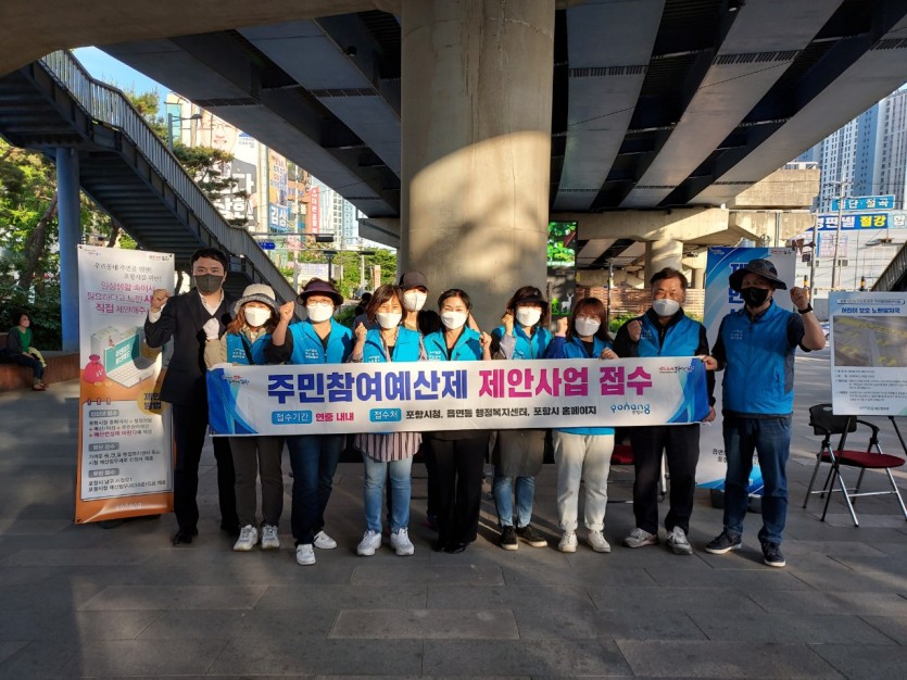 포항시 주민참여예산위원회 및 관계 공무원은 주민참여예산제에 대한 시민들의 관심을 높이고 오는 2023년 예산편성을 위한 주민참여예산 사업을 적극적으로 발굴하기 위해 지난 15일 철길숲 한터마당에서 거리홍보 캠페인을 개최했다.