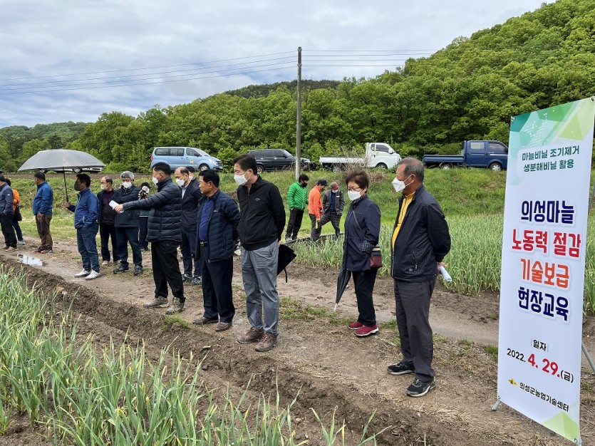 의성군은 지난달 29일 의성읍 도동리 등 관내에서 시범농가 및 마늘재배농가를 대상으로 의성마늘 노동력 절감 기술보급을 위한 현장교육을 개최했다고 3일 밝혔다.