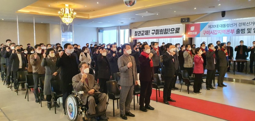 출범식에서는 행사를 주관한 구자근(구미갑), 송언석(김천) 지역선거대책위원장과 김관용, 김정재 경북총괄선대위원장, 그리고 김석기, 임이자, 박형수, 김형동, 윤두현, 김병욱 지역국회의원들도 참석해 모두가 원팀으로 똘똘뭉쳐 다 함께 뛸 것을 약속했다.