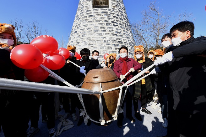 또 지난해 코로나19를 비롯한 묵은 재앙을 물리치고 대구경북과 23개 시군이 서로 상생발전해서 더 크게 발전하는 신년을 기원하는 뜻에서 새해맞이 화합주를 첨성대 옆에 위치한 대형 옹기에 저장했다.