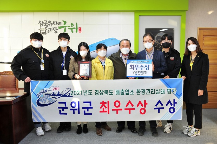 군위군 2021년도 배출업소 "환경관리실태평가 최우수상" 수상 > 경북