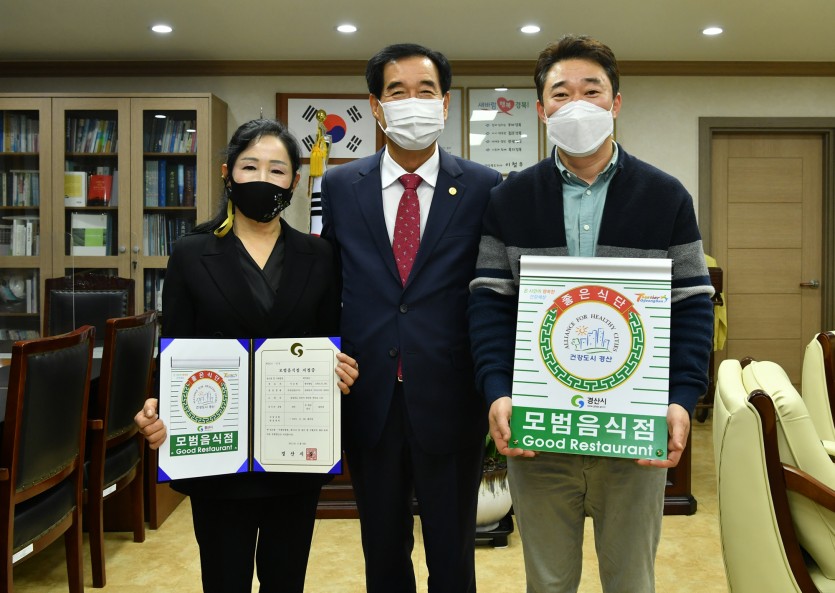 경산시는 8일 관내 일반음식점 중 위생 및 서비스 수준이 우수한 음식점을 모범음식점으로 지정하고, "모범음식점 지정증 및 표지판"을 수여했다고 밝혔다.