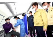 26일 오전9시 안동시보건소 방문... 애명노인마을 접종자, 보건소 관계자 격려 이철우 경북도지사는 지난 26일 오전 9시 코로나19 백신(AZ) 도내 첫 접종현장인 안동시보건소를 방문해 접종자와 보건소 관계자를 격려하고 현장의견을 청취했다.도내 백신 첫 접종자는 애명노인마을에 근무하는 사무국장 이상국(남/47)씨로, 그는 안동 SK바이오사이언스에서 생산 된 아스트라제네카 백신을 접종을 받았다.이상국씨는 "입소 어르신들의 안전을 위해서 백신 접종을 하는 것이 당연하다고 생각했다. 접종을 통해 보다 안전한 환경에서 안심하고 …