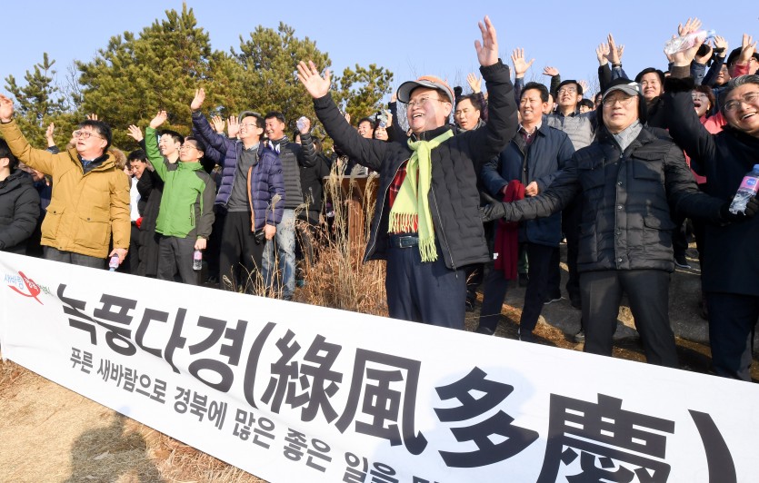 우선 이철우 도지사와 직원들은 검무산 정상에 올라 동쪽에서 떠오르는 태양을 보며 2020 경자년에는 푸른 새바람으로 경북 역사에 큰 획을 긋는 좋은 일을 보다 많이 만들겠다는 다짐을 했다.