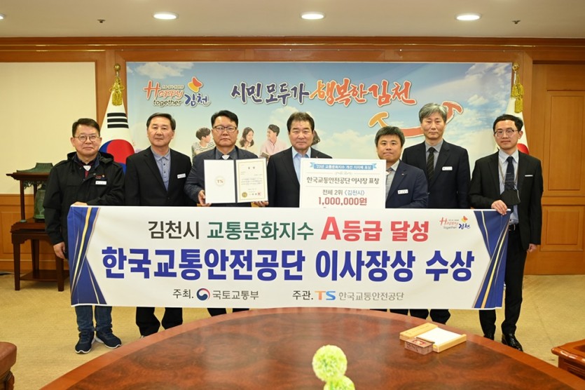 김천시가 2023년 교통문화지수 우수지자체로 선정되어 한국교통안전공단 이사장상을 받았다고 3일 밝혔다.