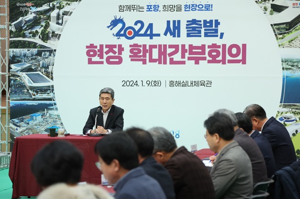 포항시 이강덕 시장은 9일 흥해실내체육관에서 새해 첫 확대간부회의 열어 올 한해 시민과 함께 하는 현장 중심의 행정을 적극 펼칠 것을 다짐했다고 밝혔다.
