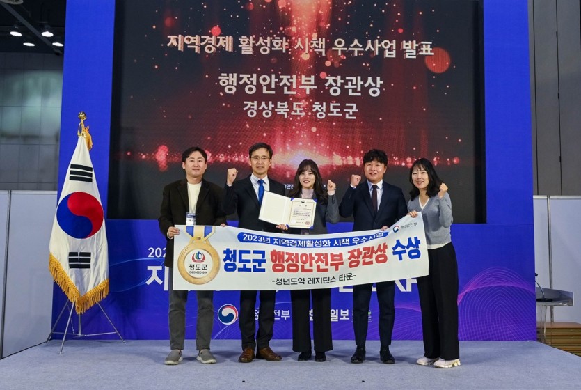이번 수상은 전국 지방자치단체를 대상으로 공모해 선정된 48개의 지역경제활성화 시책 사업 중 청도군의 청년복합공간 ‘청년도약 레지던스타운’이 최종 7개 우수사업에 포함돼, 경북 지자체 중 유일하게 수상했다.