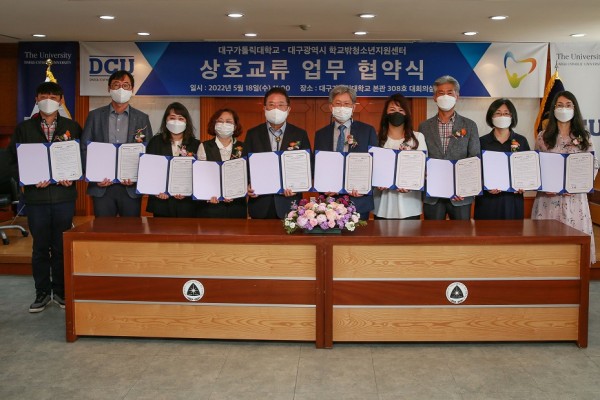 대구가톨릭대는 18일 교내 본관에서 대구시학교밖청소년지원센터, 산하 8개 구‧군 센터와 상호교류를 위한 협약을 체결했다고 밝혔다.
