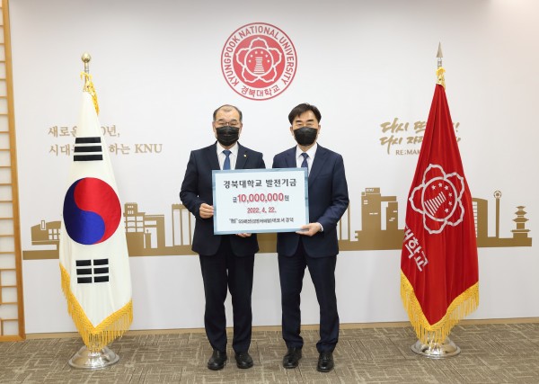 경북대는 22일 경북대 본관 총장실에서 발전기금 전달식과 감사패 수여식을 진행했다.