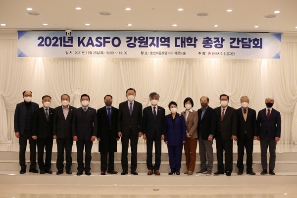 한국사학진흥재단(이사장 홍덕률, 이하 ‘KASFO‘)은, 지난 25일 춘천세종호텔에서 ‘강원지역 대학 총장간담회’를 개최했다고 밝혔다.