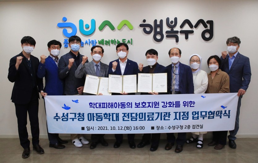 대구 수성구는 지난 12일 학대 피해 아동의 신속하고 체계적인 의료 지원을 위해 총 4개의 의료기관을 아동학대 전담의료기관으로 지정하고 업무협약을 체결했다고 밝혔다.