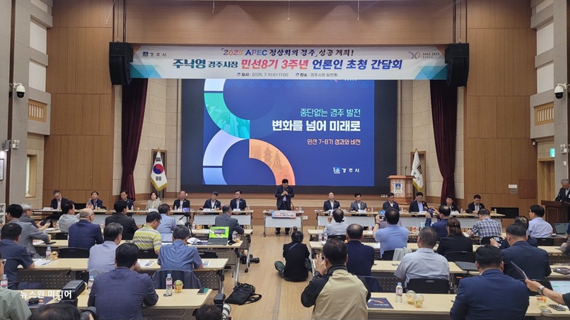 경주시가 9일 시청 알천홀에서 민선 8기 3주년을 맞아 언론인 간담회를 열고, 지난 7년간의 시정 성과와 향후 운영 방향을 공유했다.