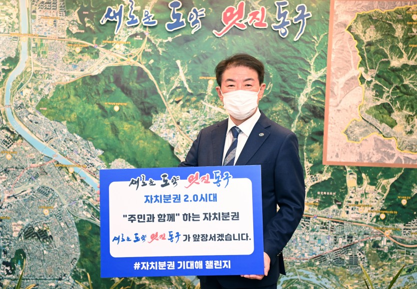 배기철 동구청장은 자치분권 2.0시대 개막을 응원하기 위해 ‘#자치분권 기대해 챌린지’에 동참했다고 지난 18일 밝혔다.