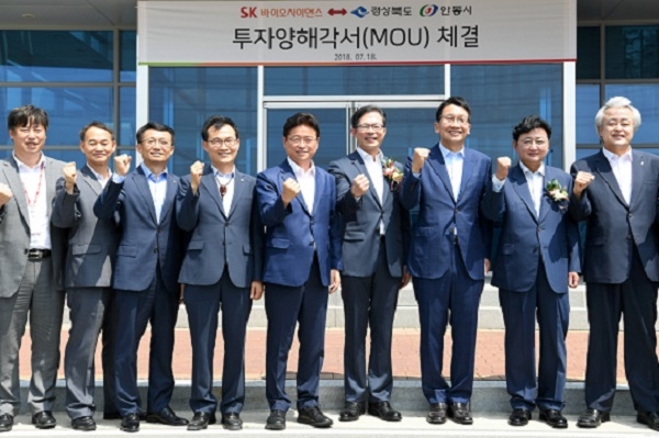 경북도와 안동시는 지난 18일 안동 바이오산업단지 내 소재한 SK바이오사이언스의 백신공장 ‘L하우스’에서 이철우 경북도지사와 안동시장, SK디스커버리 부회장, SK바이오사이언스 대표이사와 국회의원, 도의원 등 20여명이 참석한 가운데 바이오산업의 핵심인 백신 제조 공장 증설을 위한 투자양해각서를 채결했다.