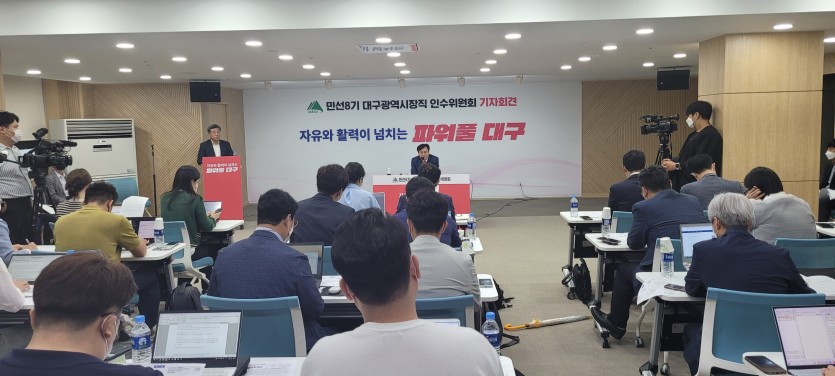 대구시장직 인수위원회는 27일 대구콘텐츠비즈니스센터에서 조직혁신, 인적쇄신, 책임행정, 전문가 영입, 재정혁신 등을 골자로 하는 시정혁신 8대 과제를 발표했다.
