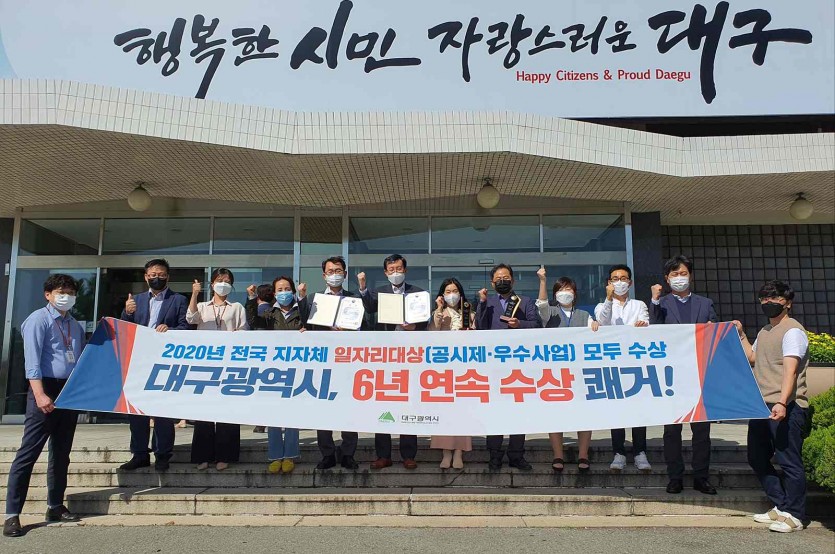 대구시는 지난달 29일 정부세종컨벤션센터에서 열린 고용노동부 주관 ‘2020년 전국 지방자치단체 일자리대상(공시제, 우수사업 부문)’ 시상식에서 2개 부문 모두 우수상 수상(기관표창)과 함께 1억 1천만원의 사업비를 받으며 민선 6기 이후 6년 연속 일자리대상을 수상하는 쾌거를 거뒀다.